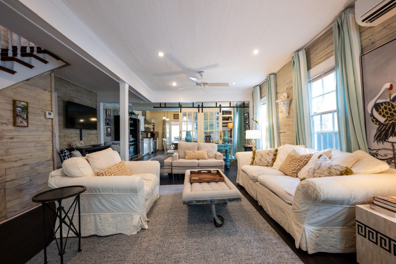 Nestled on a tranquil lane in Old Town Key West, this classic Conch home is designed for relaxed island living. The property offers multiple entertainment spaces both indoors and out, with the expansive living area and kitchen opening to a great covered patio . Enjoy a large pool surrounded by spacious decks and lush landscaping for lounging and privacy. Inside, you'll find 3 bedrooms 2.5 baths plus a poolside cottage with an additional half bath. The gourmet kitchen features stainless steel appliances and custom cabinetry, flowing effortlessly into the island-style dining room. The main floor primary suite feels like a retreat, with vaulted ceilings and glass doors that open directly to the pool. Additional highlights include Dade County Pine walls, wood floors, an open floor plan, and tall ceilings. The poolside cottage enhances the outdoor experience with its own bathroom and outdoor shower, providing extra comfort and or storage. Every detail has been thoughtfully designed to create a casual yet elegant island lifestyle.