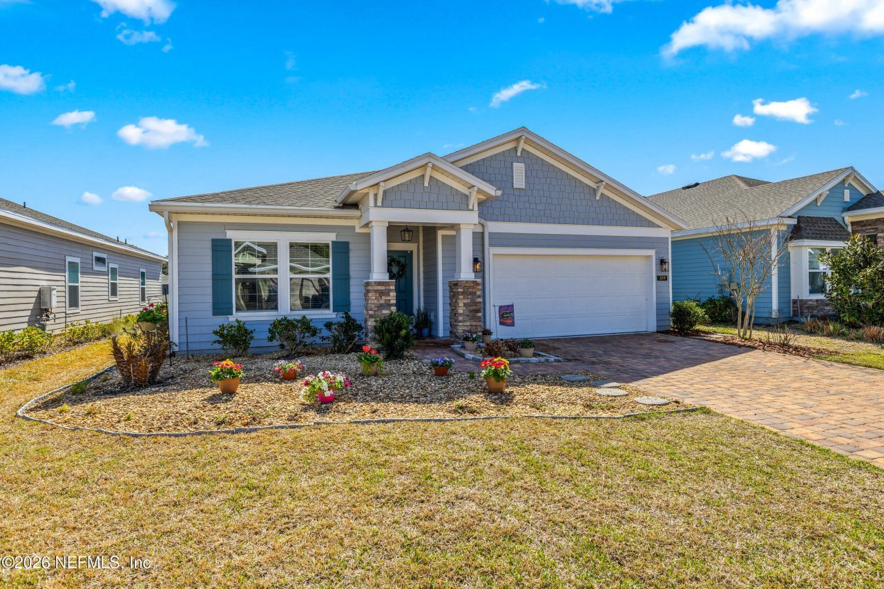 Welcome to 359 Gan Way, a beautifully crafted single-story residence built in 2022 that blends modern design with everyday functionality. The open-concept floor plan creates a seamless flow between the main living spaces, making the home feel bright, spacious, and connected.The kitchen serves as the centerpiece of the home, featuring upgraded hardware, a stylish faucet, and classic subway tile that ties the space together with a clean, timeless look. Upgraded lighting fixtures and ceiling fans throughout the home add both comfort and a refined finishing touch.The primary suite offers a private retreat with a spacious walk-in closet and a spa-inspired bathroom. Two additional bedrooms plus a dedicated flex space provide flexibility for family, guests, or a home office, while the generously sized laundry room adds convenience and practicality. Step outside to an oversized extended paver patio, offering plenty of space for outdoor dining, entertaining, or simply enjoying the Florida weather.Situated on a quiet street, the home is zoned for Trout Creek Academy (K-8) and Bartram Trail High School, both highly regarded schools. Residents also enjoy nearby parks, playgrounds, and walking trails--creating an ideal setting for families and an active lifestyle in a welcoming community.