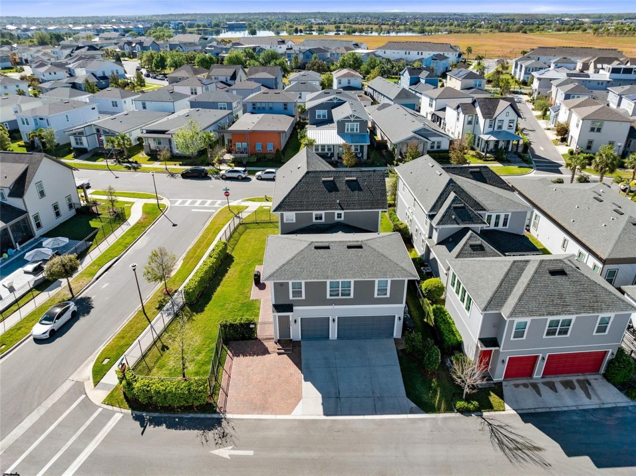Experience modern elegance and unmatched flexibility in the heart of Laureate Park, Lake Nona. This standout property includes a private, detached garage apartment-complete with its own entrance, full kitchen, bathroom, and living space. Whether used as a rental, guest suite, or multigenerational setup, this bonus space adds major value and versatility.Situated on one of the largest corner lots in the community, the main home offers nearly 3,500 sq ft of designer living. A charming front porch with modern metal columns and wood beams welcomes you inside, where custom finishes shine-from the herringbone-tiled office to the open-concept kitchen, dining, and living areas. The gourmet kitchen features sleek cabinetry, premium appliances, and a quartz island built for gathering.The first-floor primary suite offers backyard views, a spa-style ensuite with an oversized shower, and a custom walk-in closet. Upstairs, three additional bedrooms, two full baths, and a private studio with a kitchenette and full bath offer even more flexible living options.Additional perks include an extended driveway for five vehicles, a custom drop zone, and a three-car garage.Laureate Park isn't just a neighborhood-it's a vibrant lifestyle. Enjoy the Aquatic Center, resort-style pools, LP Fit gym, and 44+ miles of trails. Minutes from Medical City, dining, shopping, major highways, MCO Airport, and the USTA National Campus. This home delivers luxury, location, and the rare bonus of income-generating potential. Schedule your private tour today!