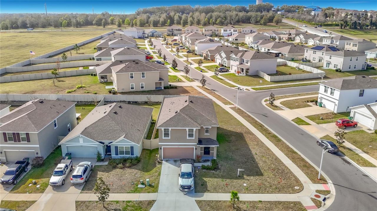 Discover this spacious five-bedroom, three-bathroom home featuring 2,267 sq. ft. of modern living space across two levels, ideal for growing families and perfect for hosting and entertaining. The main level features a bright open concept and spacious great room ideal for relaxing and gathering. The modern kitchen is equipped with granite counters, abundant cabinet space, and a large pantry, complemented with stainless steel appliances, making cooking and cleaning effortless. A convenient first-floor bedroom and full bathroom give added flexibility, while four additional bedrooms and 2 bathrooms are located on the second floor. Enjoy the added flexibility of the loft area, perfect for a second living space, home office or playroom. The home also offers 2 parking spaces and a 2-car garage, providing plenty of room for vehicles and storage. Set on a corner lot, the property included a rear concrete patio that expands the living space outdoors, a built-in irrigation system for easy lawn maintenance, and community sidewalks that promote both safety and a welcoming neighborhood feel. Community Amenities Include: Clubhouse with party rooms, Resort-style swimming pool, Playground and Dog park. This home is perfect for those looking to settle into a vibrant, growing neighborhood.